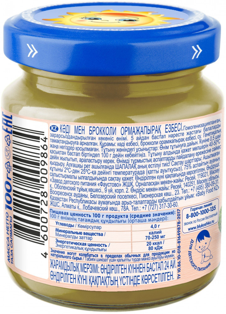Бабушкино Лукошко Пюре детское «Кабачки и капуста брокколи»