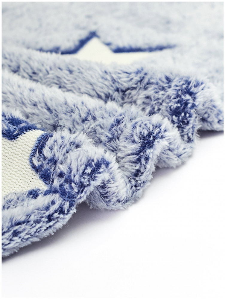 Шикарный плед, снаружи со звездочками, внутренняя сторона вся пушистая. Тонкий, и очень компактный, не занимает много места)