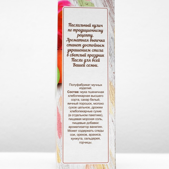 💳 Оплатить за товар можно при получении 🇰🇿 Есть бесплатная доставка по Казахстану от 1 дня 🎁 Копите бонусы с каждой покупки Хлебная смесь «Пасхальный кулич» создана по традиционному рецепту русской национальной кухни. Ароматная выпечка станет достойным украшением стола в светлый праздник Пасхи. А в любое другое время года эту великолепную хлебную смесь можно использовать для выпечки замечательных пышных булочек, способных согреть вас и ваших близких в холодные осенние и зимние дни. Вес готового хлеба: около 620-650 г. |