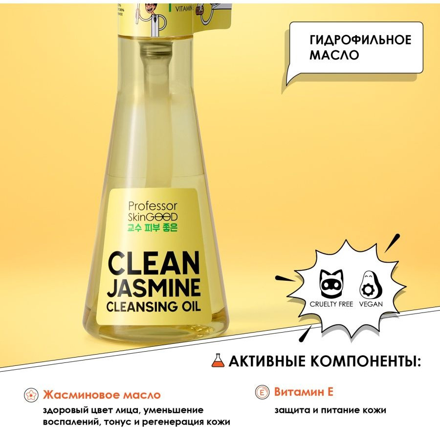 Professor SkinGOOD Масло гидрофильное «Clean Jasmine»В данный момент этот товар отсутствует в продаже. Возможно, у нас найдется аналогичный или похожий товар здесь. «Clean Jasmine Cleansing OiL» быстро растворяет даже самый стойкий макияж без вреда для нежной кожи. Гидрофильное масло «Clean Jasmine Cleansing OiL» от Professor SkinGood с жасмином и с витамином Е мгновенно очищает кожу от макияжа любого уровня стойкости. Подходит для ежедневного использования, для всех типов кожи. |