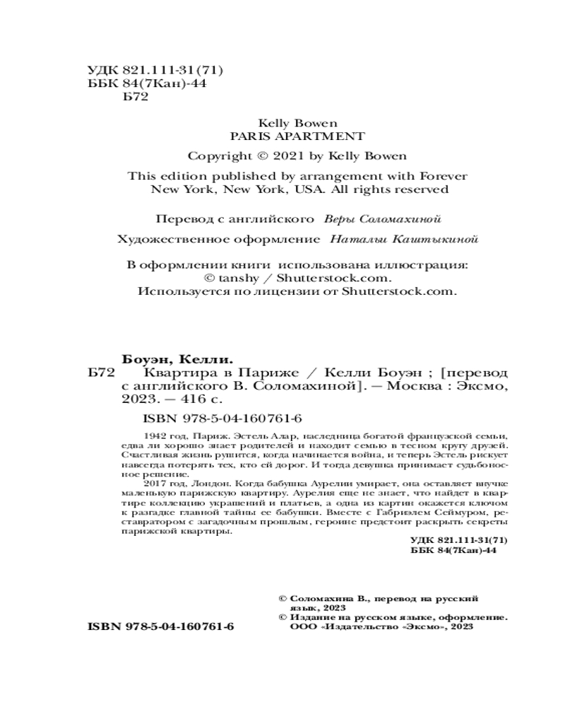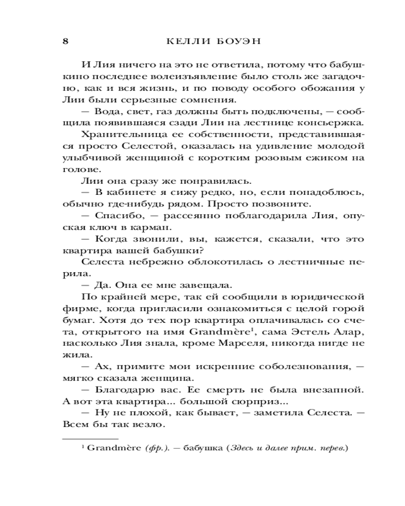 Душераздирающий исторический роман Келли Боуэн рассказывает о тайнах поколений. «Парижская квартира» сочетает в себе лучшее от женской художественной литературы. Это пронзительное и захватывающее путешествие, разворачивающиеся на фоне объятой войной Франции.