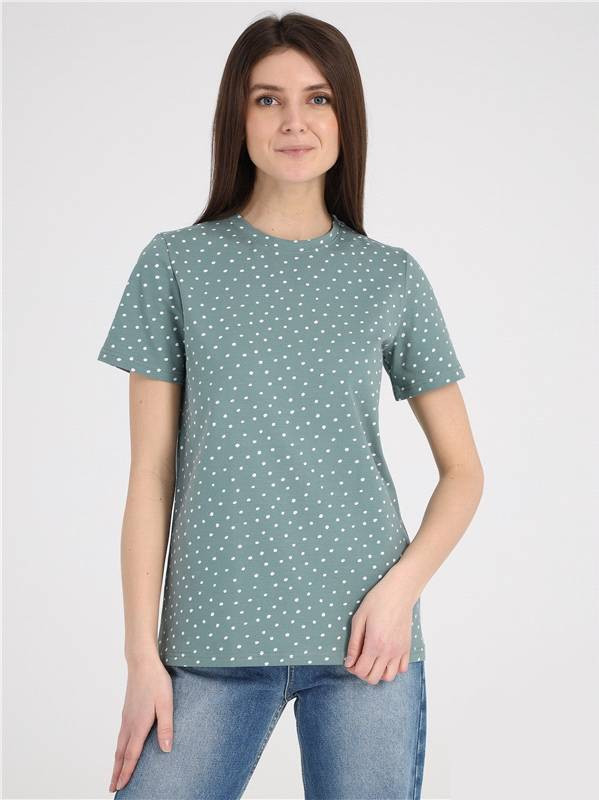 Футболка в мелкий белый горох 56 раз.- у меня ОГ= 112см- облегает нормально. Паз закрывает. Для тех, у кого полная рука- ширина рукава внизу = 36 см, длина= 22см. Цвет освежает, мне понравилась очень- очень. Рекомендую