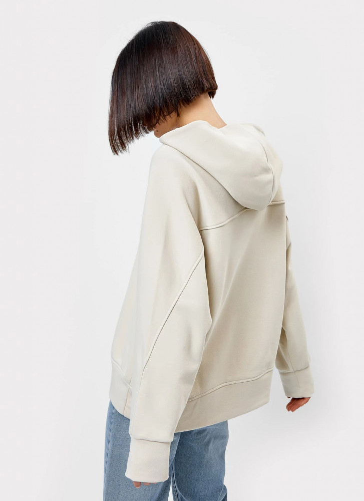Оверсайз, брала на размер меньше, но даже если на два размера меньше, было бы тоже хорошо. А так-модель отличная, капюшон большой, ткань плотная, сшито аккуратно.