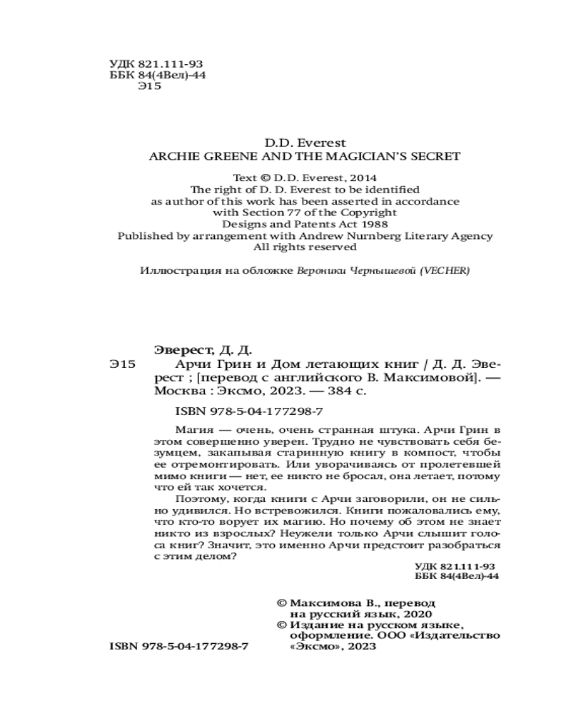 Серия: Детск. Магическая библиотека Арчи Грина Если вы хотите окунуться в уютный мир книг, магии и приключений, эта книга для вас! Не так давно Арчи Грин узнал, что в мире существует волшебство, и хранится оно в книгах. Поэтому, когда книги заговорили с мальчиком, он не сильно удивился. Но встревожился. Книги пожаловались ему, что кто-то ворует их магию. Но почему об этом не знает никто из взрослых? Неужели только Арчи слышит голоса книг? Значит, это именно Арчи предстоит разобраться с этим делом? |