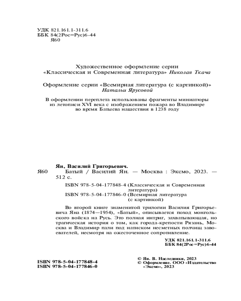 💳 Оплатить за товар можно при получении 🇰🇿 Есть бесплатная доставка по Казахстану от 1 дня 🎁 Копите бонусы с каждой покупки Серия: Всемирная литература (новое оформление) Во второй книге знаменитой трилогии Василия Григорьевича Яна (1874–1954) «Батый» описывается поход монгольского войска на Русь. Это полная интриг захватывающая, но трагическая история о том, как города-крепости Рязань, Москва и Владимир пали под натиском несметных полчищ завоевателей, несмотря на ожесточенное сопротивление. |