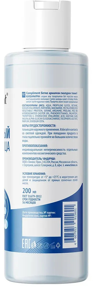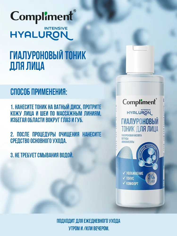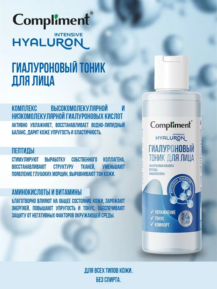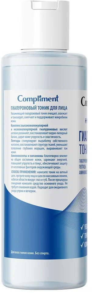 Compliment Тоник для лица с гиалуроновой кислотой+56 увлажняет быстро впитывается гладкость под макияж