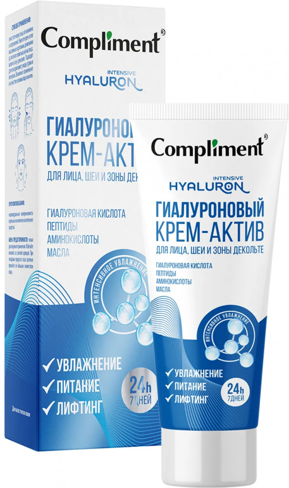 Compliment Крем-актив для лица и зоны декольте с гиалуроновой кислотой+22 хороший крем сухая кожа возрастная кожа