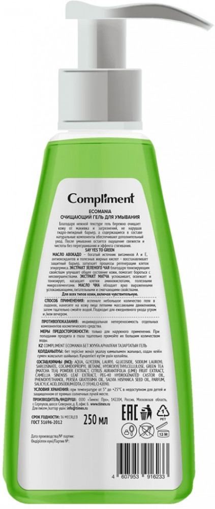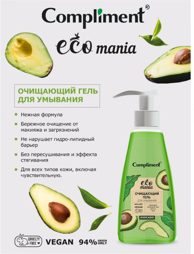 Compliment Гель для умываниягустая пена экономичный расход нежный аромат срок годности В данный момент этот товар отсутствует в продаже. Возможно, у нас найдется аналогичный или похожий товар здесь. Серия: Ecomania Благодаря нежной текстуре гель бережно очищает кожу от макияжа и загрязнений, не нарушая гидро-липидный барьер, а содержащиеся в составе натуральные компоненты обеспечивают дополнительный уход. После умывания остается ощущение свежести и чистоты без пересушивания и эффекта стягивания. Подходит для всех типов кожи, включая чувствительную. |