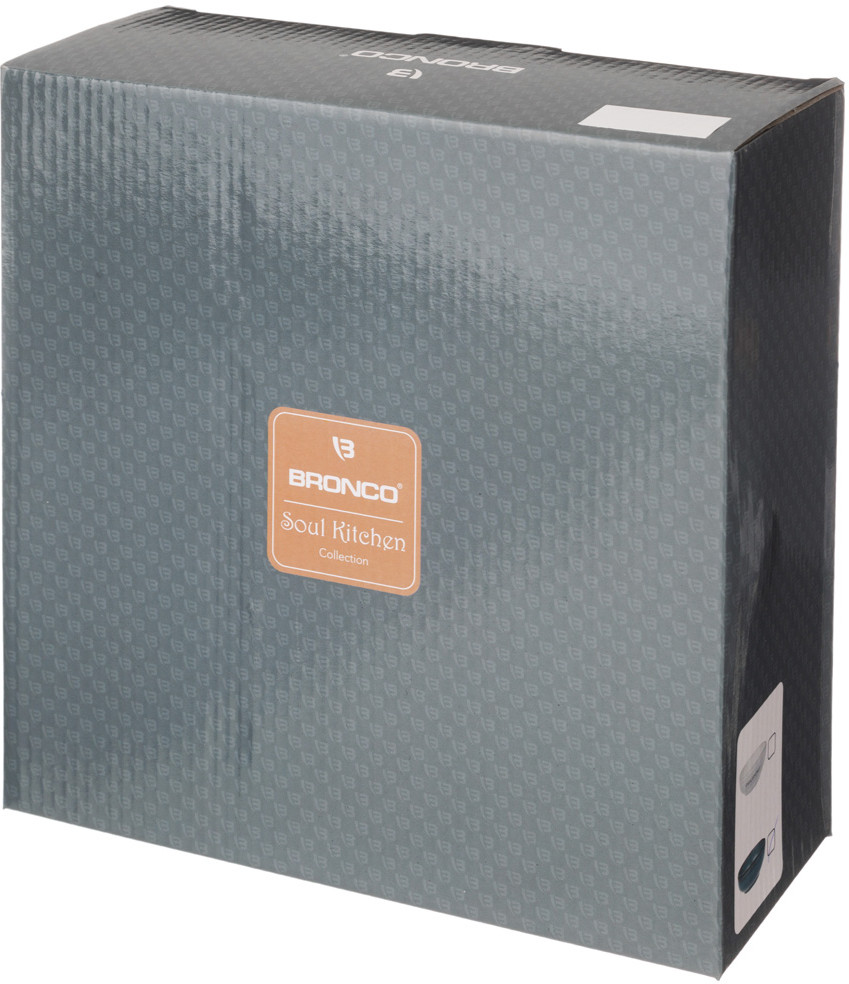 Профессиональная команда дизайнеров ТМ «Bronco» неустанно следит за меняющейся модой и фокусируется на дизайне, специфике подачи блюд европейской и русской кухонь, инновациях в технологии. Коллекция «Soul Kitchen» — Душа кухни поражает своей смелостью, стилем, множеством интересных идей для сервировки и интерьера. Упрочненный фарфор на каждый день — это отличный подарок себе и своим друзьям. Коллекция «Soul Kitchen» представлена в трех цветовых решениях — это белый базовый, светлый серый и сине-зеленый, которые прекрасно сочетаются и дополняют друг друга. Особый шик и прочность придает многослойная глазурь — комбинация нескольких глазурей, которые нанесены последовательно и обожжены за один прием. Слои перемешиваются в обжиге непредсказуемым образом, цвет становится плотным и насыщенным и это очень красиво. Большое внимание уделено формам, они удобные, оптимальных размеров и помогут воплотить в жизнь многие кулинарные рецепты. Тарелки, блюда, доски, чаши, подставки, формы для выпечки, кувшины, банки, кружки... — широкий ассортимент «Soul Kitchen» для кухни, впишется в любой интерьер. Все изделия сертифицированы. Стильная упаковка. Можно смело мыть в посудомоечной машине, ставить в микроволновую печь. Готовьте с удовольствием!