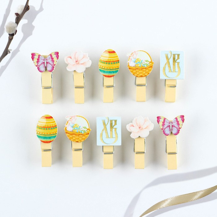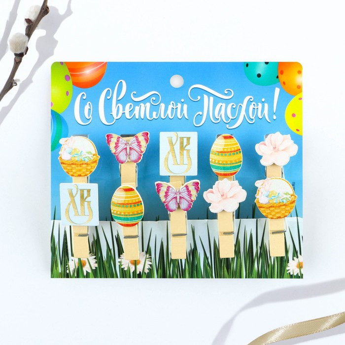 Семейные традиции Набор прищепок для украшения вербы «Со Светлой Пасхой»В данный момент этот товар отсутствует в продаже. Возможно, у нас найдется аналогичный или похожий товар здесь. Серия: Пасха Прищепки пасхальные 10 шт. — это не только полезные приспособления в хозяйстве, но также элементы оформления интерьера, цветочных композиций, декорирования подарков, открыток и многого другого. Размер прищепки (без дополнительного элемента): 3,5×0,7 см. |