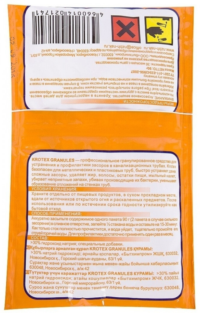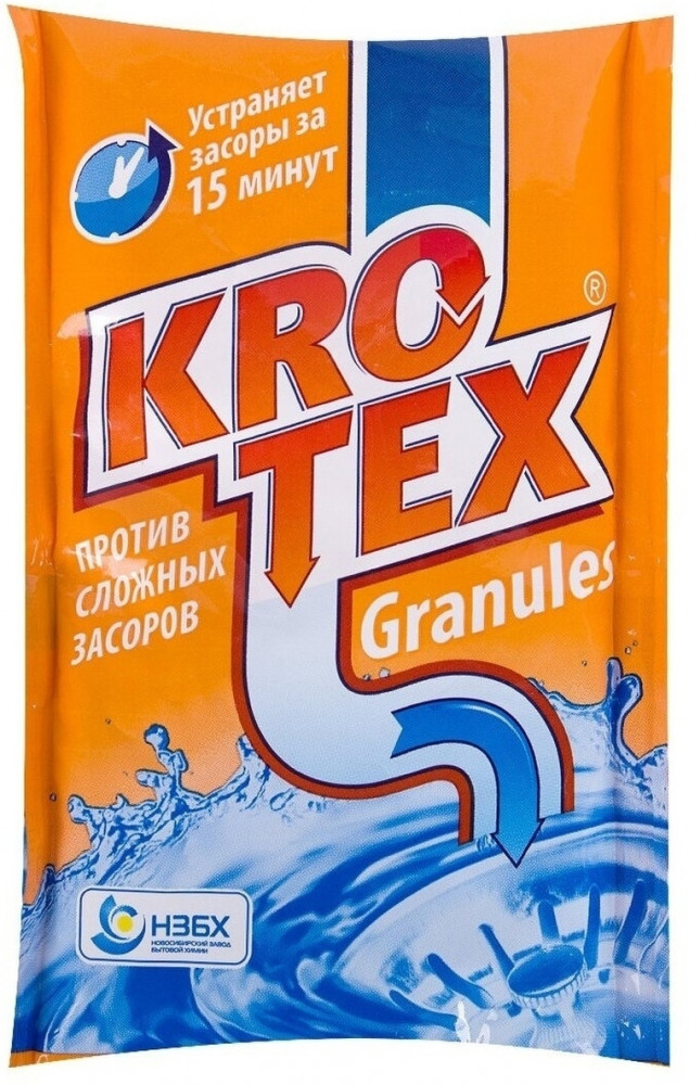 Торговая марка «Krotex» от производителя «Новосибирский завод бытовой химии»— линейка средств для быстрого и безопасного ударения засоров в сточных трубах. |