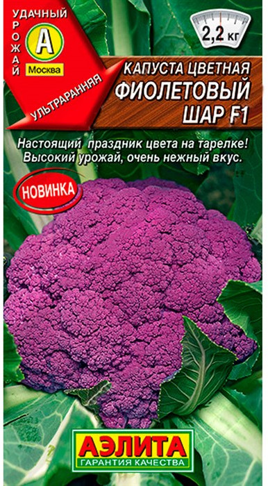 Аэлита Капуста цветная «Фиолетовый шар F1»всхожесть красота фиолетовая капуста срок годности вкус В данный момент этот товар отсутствует в продаже. Возможно, у нас найдется аналогичный или похожий товар здесь. Яркие головки с очень нежным вкусом. Гибрид урожайный и неприхотливый, созревает спустя 80-82 дня после высадки рассады. Соцветия фиолетовые, выровненные, плотные, массой 1,8-2,2 кг. Частично укрыты от солнечных лучей. Растения мощные, с вертикальной розеткой листьев и хорошо развитой корневой системой. Головки содержат повышенное количество антоцианов – веществ, предотвращающих болезни сердца и кровеносной системы. Во время приготовления на пару или в кляре соцветия почти не теряют окраску; при варке лучше добавить в воду немного лимонной кислоты. Пригодны для заморозки. Урожайность 7-9 кг/м2 . |