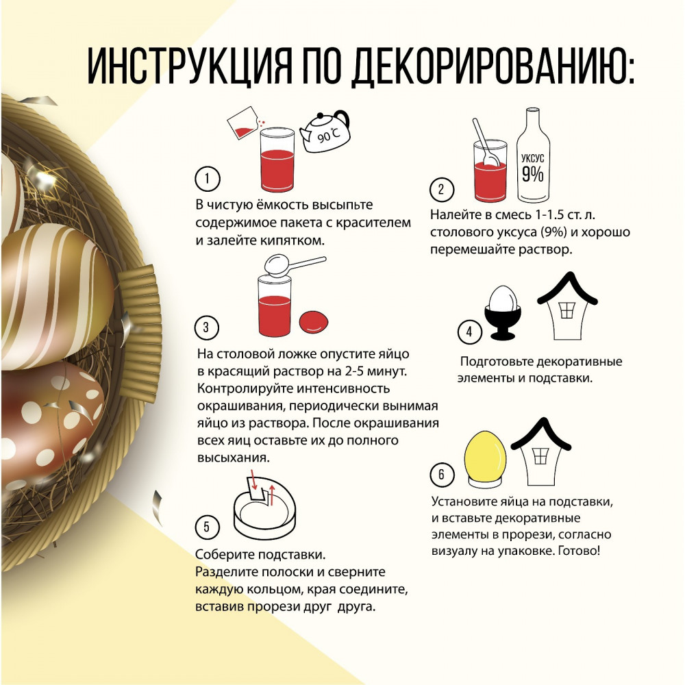 Семейные традиции Набор для украшения яиц пасхальный «Деревенька. Гжель»В данный момент этот товар отсутствует в продаже. Возможно, у нас найдется аналогичный или похожий товар здесь. Серия: Пасха. Гжель Красивый декор пасхальных яиц — одно из самых приятных занятий во время подготовки к Пасхе. Традиционно яйца красят в луковой шелухе, что придает им символический красный цвет. Но так хочется, чтобы праздничный стол украшали не только красные, но и разноцветные, необычно декорированные яйца. Самый простой способ — использовать пищевые красители для яиц. Помимо красителей в комплекте идут картонные подставки для яиц и декоративные элементы, с помощью которой можно оригинально оформить пасхальные яйца. Набор рассчитан на 4 яйца. |