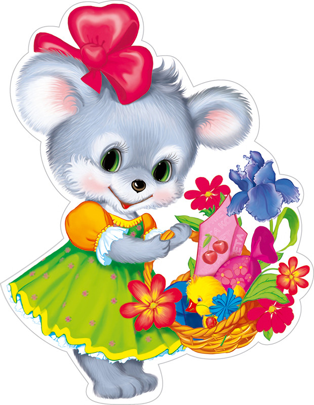 Плакат вырубной «Мышка с корзинкой цветов»+5