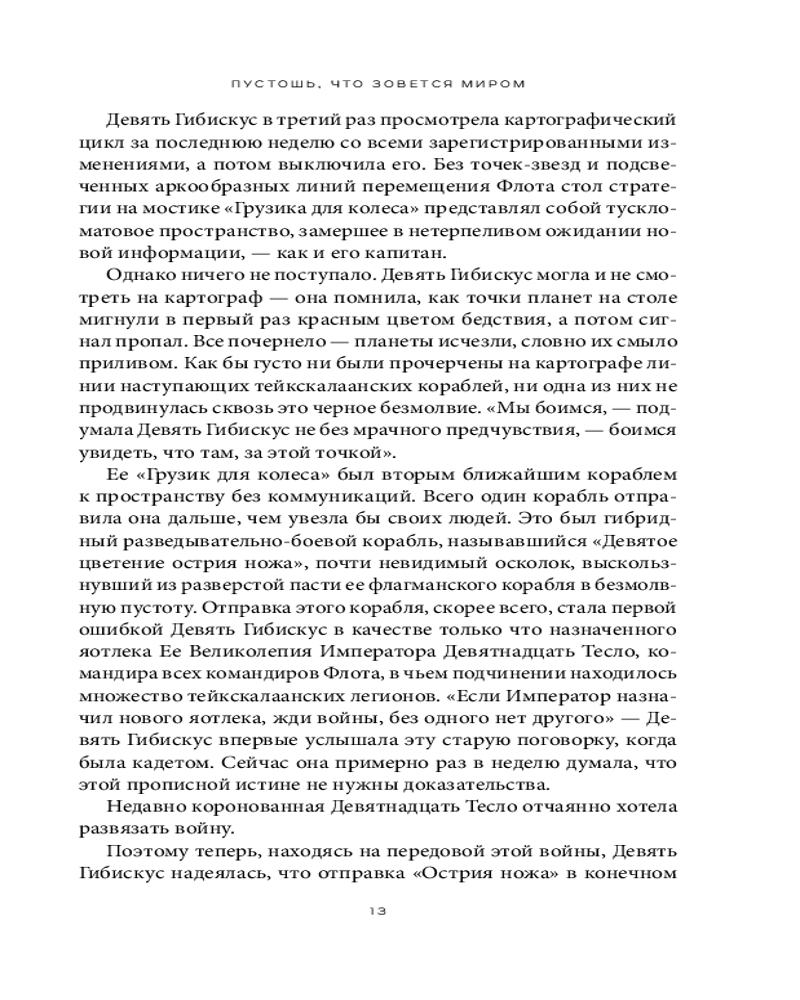 Пустошь, что зовётся миромВ данный момент этот товар отсутствует в продаже. Возможно, у нас найдется аналогичный или похожий товар здесь. Серия: Fanzon. Sci-Fi Universe. Лучшая новая НФ Инопланетная армада появляется на границе пространства космической империи Тейкскалаан. Командующий имперским флотом отчаянно пытается наладить дипломатические отношения с превосходящими силами захватчиков. Теперь Махит Дзмаре сталкивается с невыполнимой задачей ― начать общение с враждебным существом. Ее провал гарантирует миллионы смертей в бесконечной войне. А успех предотвратит распад Тейкскалаана и обеспечит продолжение хищнической имперской экспансии. Или же будет создано нечто совершенно немыслимое. |