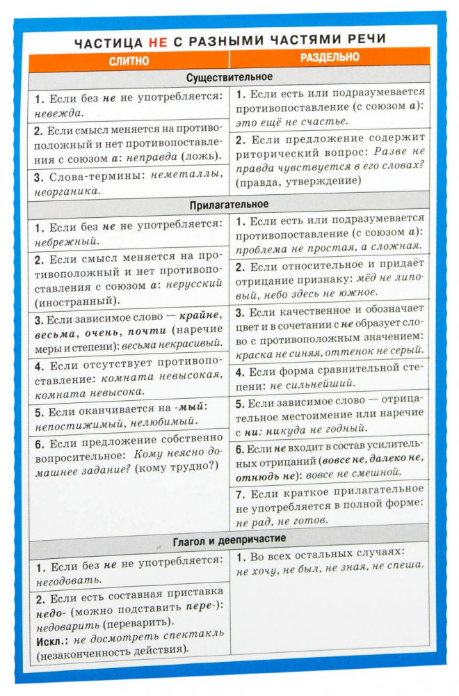НЕ с разными частями речиВ данный момент этот товар отсутствует в продаже. Возможно, у нас найдется аналогичный или похожий товар здесь. Серия: Наглядные пособия. Раздаточные материалы Наибольшие трудности в русском языке вызывают орфография и пунктуация. Правила забываются, грамотность школьников резко понижается. Самостоятельно поправить положение возможно, работая по данному наглядному пособию. Можно не только вспомнить, но и закрепить правила. А проверить свою грамотность, можно написав сочинение или диктант, периодически обращаясь к наглядной табличке. Наглядное пособие «Правописание НЕ со всеми частями речи» имеет удобный формат, уже знакомый ранее школьникам по предыдущим выпускам наглядных пособий по русскому языку издательством «Айрис»; ёмкость материала способствует чёткому запоминанию правил, преодолению трудностей и формированию устойчивых навыков грамотного письма учащихся. В наглядном пособии рассматриваются правописание НЕ слитное и раздельное с разными частями речи: с существительными, прилагательными, глаголами, деепричастиями, причастиями, наречиями, местоимениями. Пособие по русскому языку предназначено для школьников, абитуриентов, преподавателей и репетиторов. |