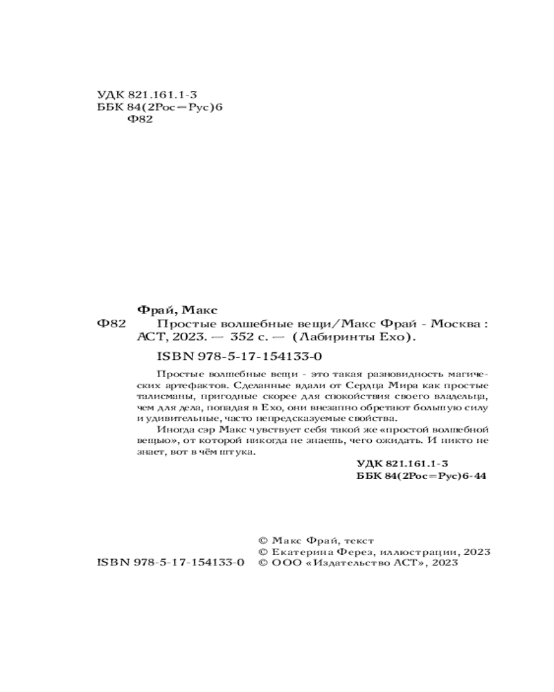 💳 Оплатить за товар можно при получении 🇰🇿 Есть бесплатная доставка по Казахстану 🎁 Копите бонусы с каждой покупки Серия: Лабиринты Ехо (илл. Ферез) Простые волшебные вещи — это такая разновидность магических артефактов. Сделанные вдали от Сердца Мира как простые талисманы, пригодные скорее для спокойствия своего владельца, чем для дела, попадая в Ехо, они внезапно обретают большую силу и удивительные, часто непредсказуемые свойства. |