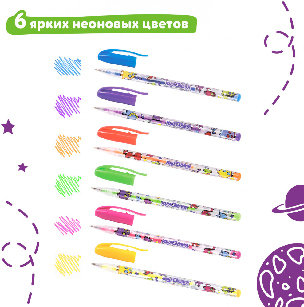 Юнландия Набор ручек гелевых неоновых+8
