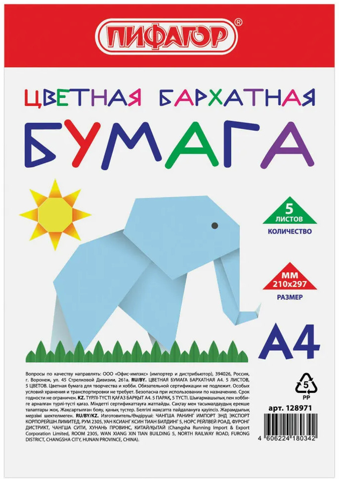Пифагор Набор цветной бумаги-20% +24