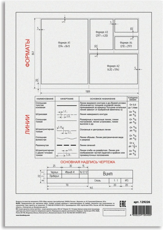 Brauberg Папка для черчения-20% +33 качественная бумага плотная бумага не лохматится для черчения