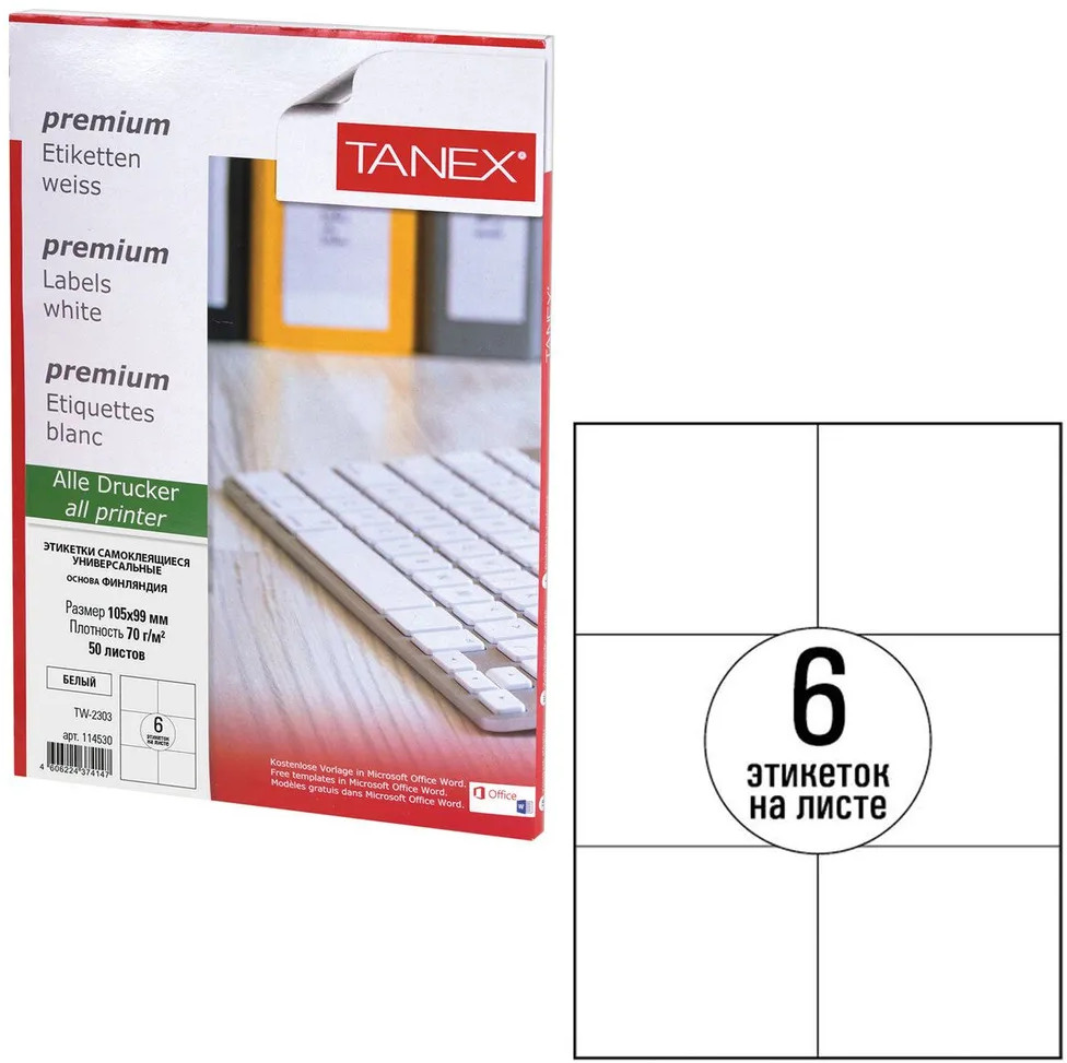 💳 Оплатить за товар можно при получении 🇰🇿 Есть бесплатная доставка по Казахстану от 1 дня 🎁 Копите бонусы с каждой покупки Серия: Universal Универсальные самоклеящиеся этикетки Tanex производятся из высококачественного сырья ведущего европейского производителя UPM-Kymmene, Финляндия. Самоклеящиеся этикетки позволят быстро и качественно подготовить адресные наклейки, регистрационные номера, аннотации при помощи лазерного или струйного принтера. |