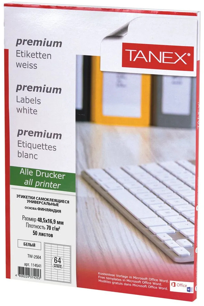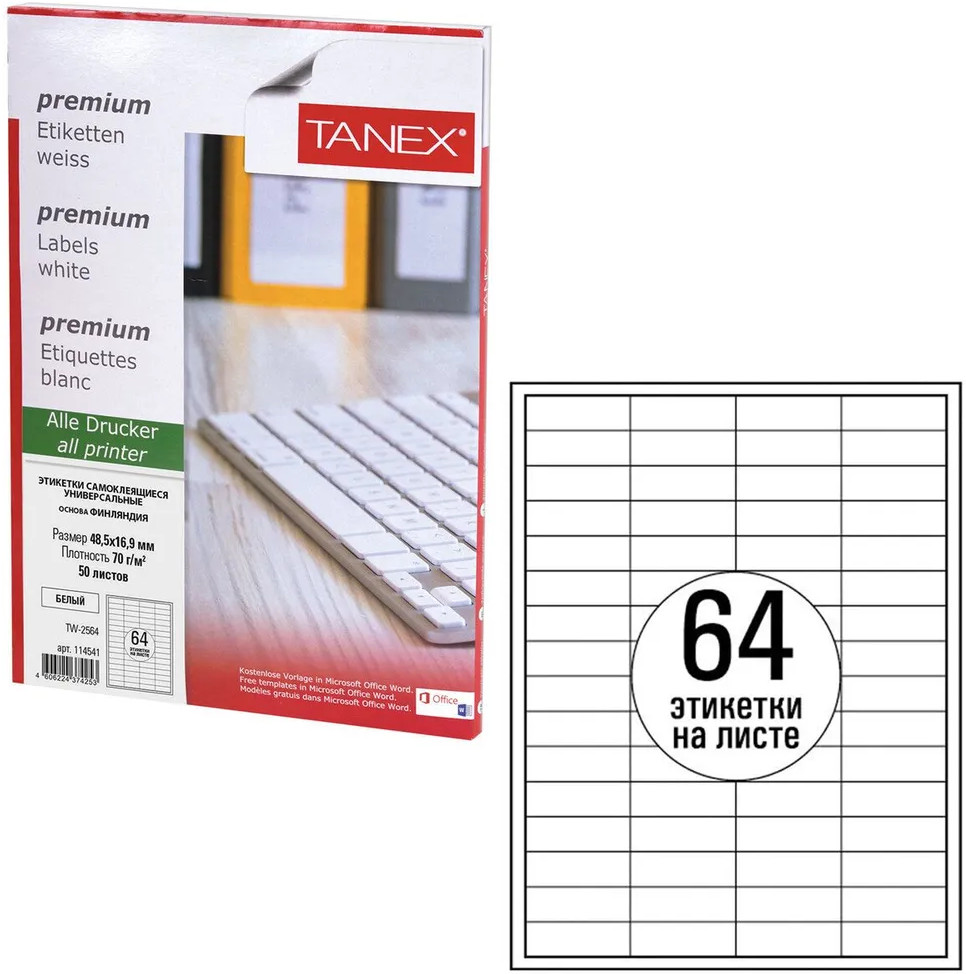 💳 Оплатить за товар можно при получении 🇰🇿 Есть бесплатная доставка по Казахстану от 1 дня 🎁 Копите бонусы с каждой покупки Серия: Universal Универсальные самоклеящиеся этикетки Tanex производятся из высококачественного сырья ведущего европейского производителя UPM-Kymmene, Финляндия. Самоклеящиеся этикетки позволят быстро и качественно подготовить адресные наклейки, регистрационные номера, аннотации при помощи лазерного или струйного принтера. |