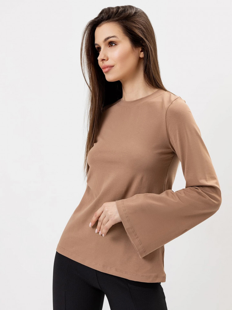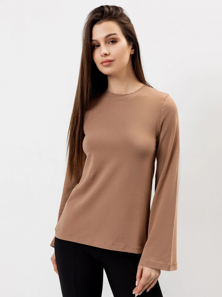 Классный лонгслив с расклешённым рукавом, в размер. Оттенок совпадает, но на фото он выглядит слегка светлее