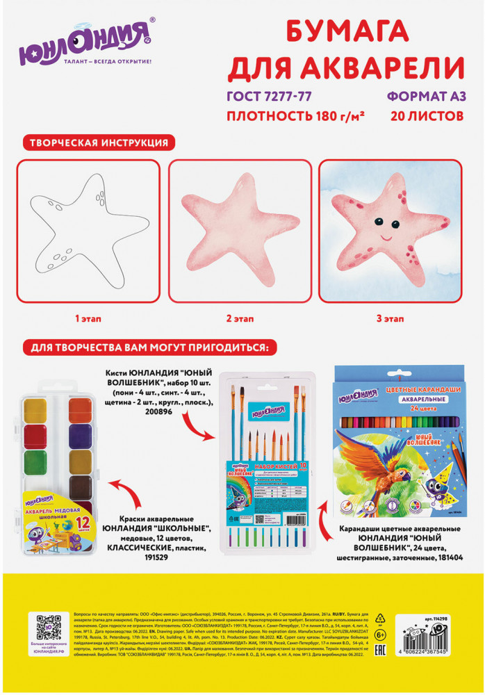 Юнландия Папка для акварелиВ данный момент этот товар отсутствует в продаже. Возможно, у нас найдется аналогичный или похожий товар здесь. Папка для акварели подходит для рисования всеми видами водорастворимых красок, а также подойдет для рисования карандашами, ручками и фломастерами. Предназначена для непрофессионального и детского рисования, художественная техника — «сухая» акварель. Содержит 20 листов формата А3. Белизна 100%. Качественные листы высокой плотности 180 г/м2 устойчивы к истиранию, воздействию влаги, обеспечивают чистую реалистичную передачу цвета. Обложка выполнена из мелованного картона. |