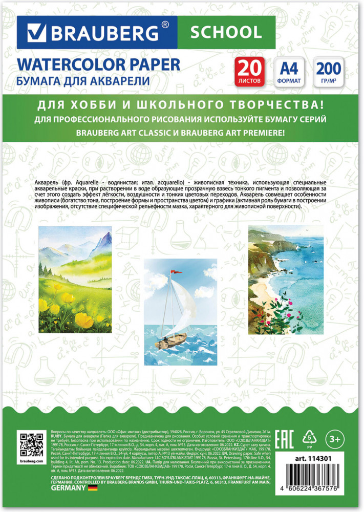 💳 Оплатить за товар можно при получении 🇰🇿 Есть бесплатная доставка по Казахстану от 1 дня 🎁 Копите бонусы с каждой покупки Папка для акварели подходит для рисования всеми видами водорастворимых красок, а также подойдет для рисования карандашами, ручками и фломастерами. Предназначена для непрофессионального и детского рисования. Содержит 20 листов формата А4. Белизна 100%. Качественные листы высокой плотности 200 г/м2 устойчивы к истиранию, воздействию влаги, обеспечивают чистую реалистичную передачу цвета. Обложка выполнена из мелованного картона. |