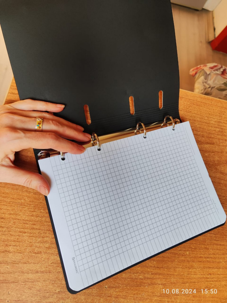 Выбирала тетрадь с венецианским принтом. Качество печати нормальное, кольца хорошо держат листы.