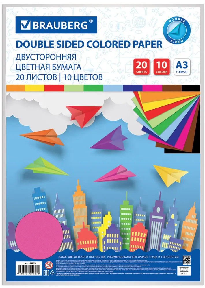 💳 Оплатить за товар можно при получении 🇰🇿 Есть бесплатная доставка по Казахстану от 1 дня 🎁 Копите бонусы с каждой покупки Набор цветной двухсторонней бумаги Brauberg предназначен для творчества, хобби, моделирования, оформления презентаций как любителями, так и профессионально занимающимися людьми. Плотность — 80 г/м2. Немелованная двусторонняя цветная бумага окрашивается непосредственно в процессе изготовления и обладает плотностью 80 г/м2. Набор включает 20 листов формата А3 (297х420 мм) в 10-ти разнообразных и насыщенных однородных цветах. Листы упакованы в полиэтиленовый пакет с липким краем, легко режутся и сгибаются. |