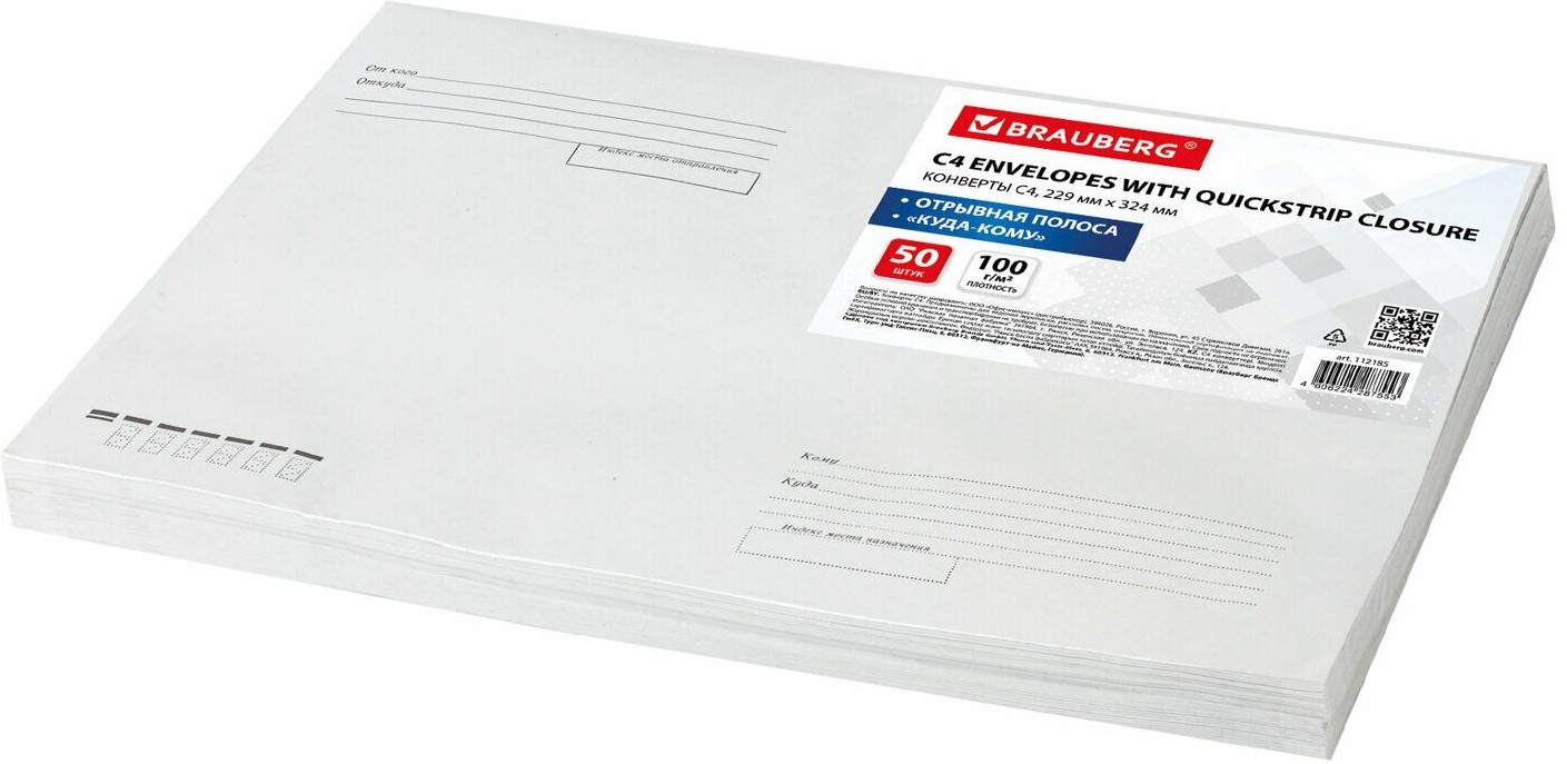 Brauberg Набор конвертов с отрывной полосой «Куда-кому»-20% +112