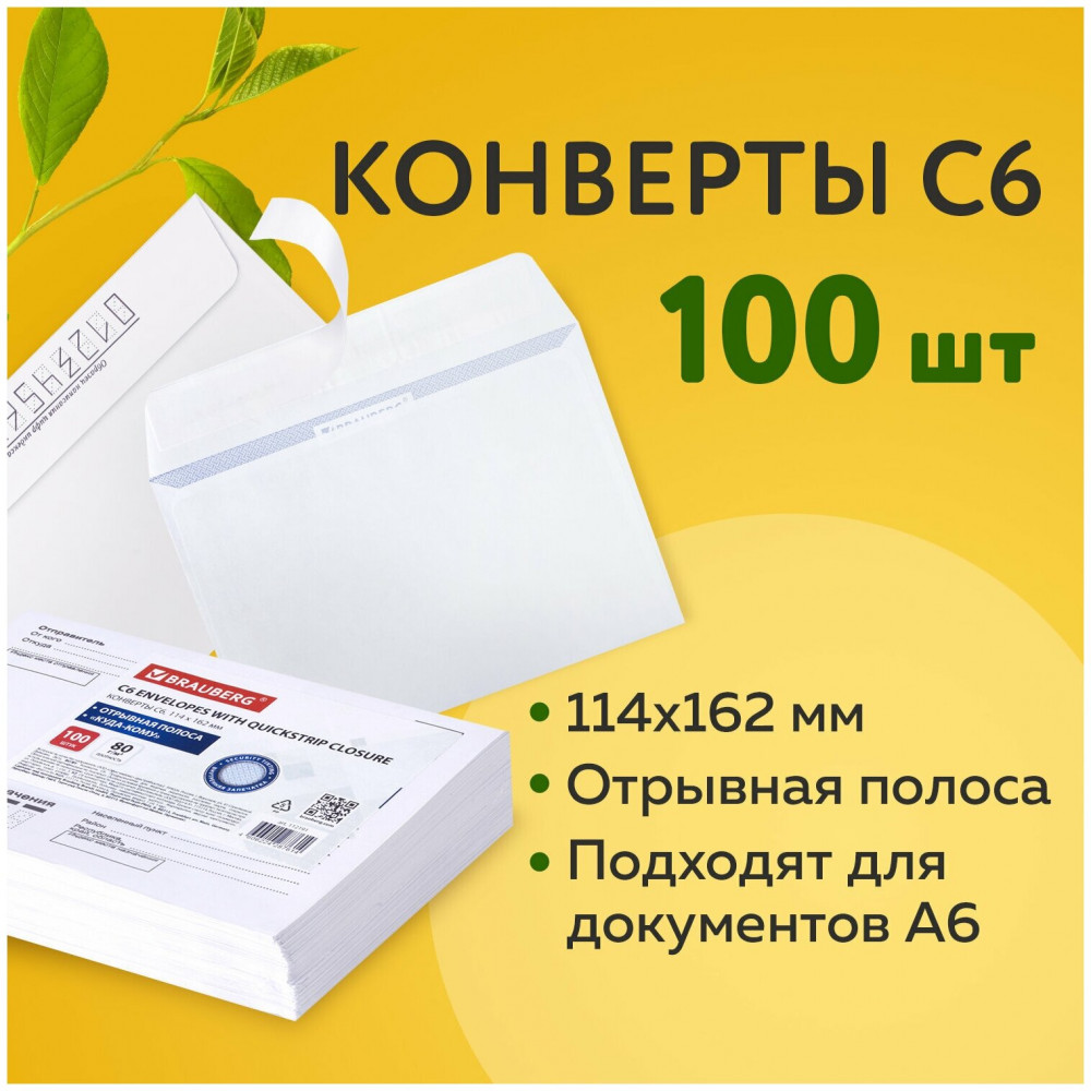 Brauberg Набор конвертов с отрывной полосой «Куда-кому»-20% +58