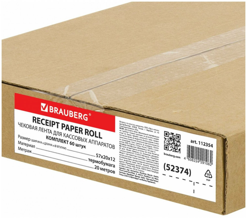 💳 Оплатить за товар можно при получении 🇰🇿 Есть бесплатная доставка по Казахстану от 1 дня 🎁 Копите бонусы с каждой покупки Чековая лента Brauberg предназначена для использования в стационарных платежных терминалах и банкоматах, имеющих термопринтер для печати чеков. Cостоит из бумажной основы с нанесением на неё термочувствительного химического состава. Рулоны изготовлены на современном оборудовании, обеспечивающем ровную намотку и отсутствие бумажной пыли. Позволяют получить печать высокого качества и продлевают срок службы оргтехники. |