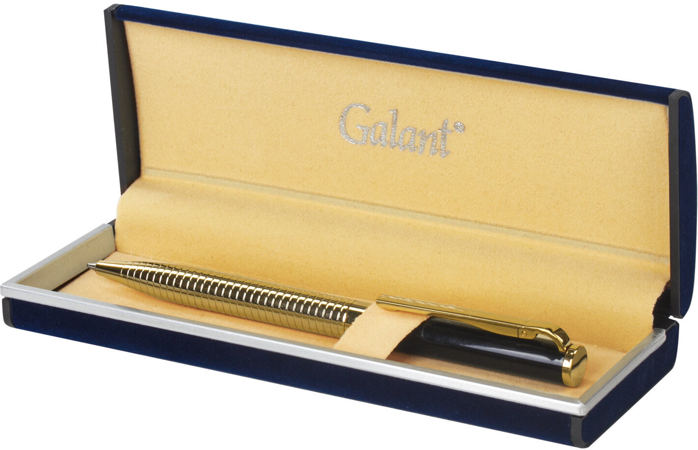 Изящная ручка станет отличным подарком к любому празднику или событию, подчеркнет статус и изысканность вкуса владельца. Корпус ручки золотистого цвета выполнен из латуни и декорирован гравировкой в виде колец. Поставляется в индивидуальном подарочном футляре. Подходит для гравировки. Стиль и изысканность, роскошь и практичность, совершенство снаружи и внутри — всем этим требованиям достойно отвечает продукция Galant. |