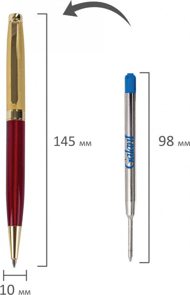 💳 Оплатить за товар можно при получении 🇰🇿 Есть бесплатная доставка по Казахстану от 1 дня 🎁 Копите бонусы с каждой покупки Элегантная ручка станет отличным подарком к любому празднику или событию, подчеркнет статус и изысканность вкуса владельца. Корпус ручки бордового цвета выполнен из латуни и декорирован позолоченными деталями. Поставляется в индивидуальном подарочном футляре. Подходит для гравировки. Стиль и изысканность, роскошь и практичность, совершенство снаружи и внутри — всем этим требованиям достойно отвечает продукция Galant. |