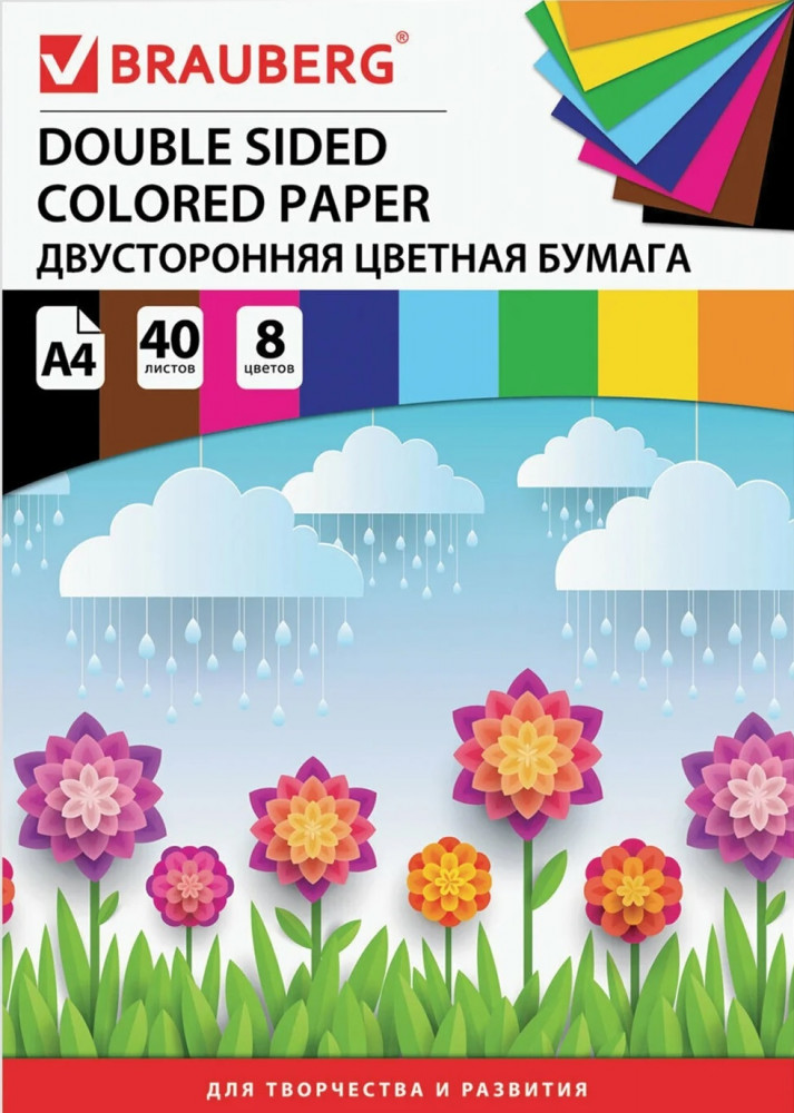 Brauberg Набор бумаги цветной двухсторонней-50% +8