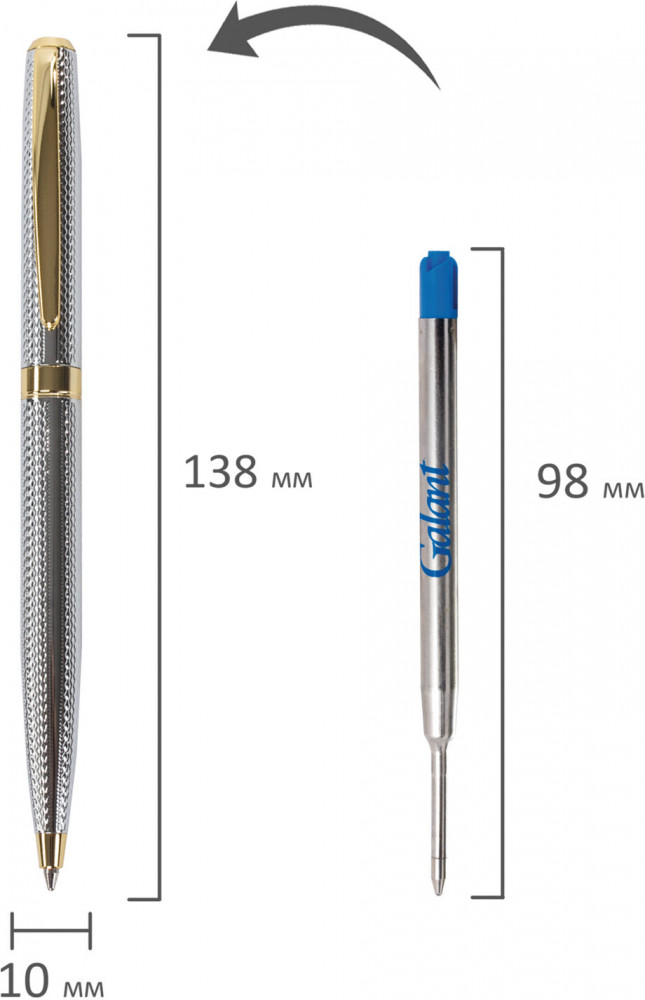 💳 Оплатить за товар можно при получении 🇰🇿 Есть бесплатная доставка по Казахстану от 1 дня 🎁 Копите бонусы с каждой покупки Изящная ручка станет отличным подарком к любому празднику или событию, подчеркнет статус и изысканность вкуса владельца. Утонченная модель ручки с корпусом из латуни серебристого цвета и золотыми деталями прекрасно лежит в руке. Поставляется в индивидуальном подарочном футляре. Подходит для гравировки. Стиль и изысканность, роскошь и практичность, совершенство снаружи и внутри — всем этим требованиям достойно отвечает продукция Galant. |