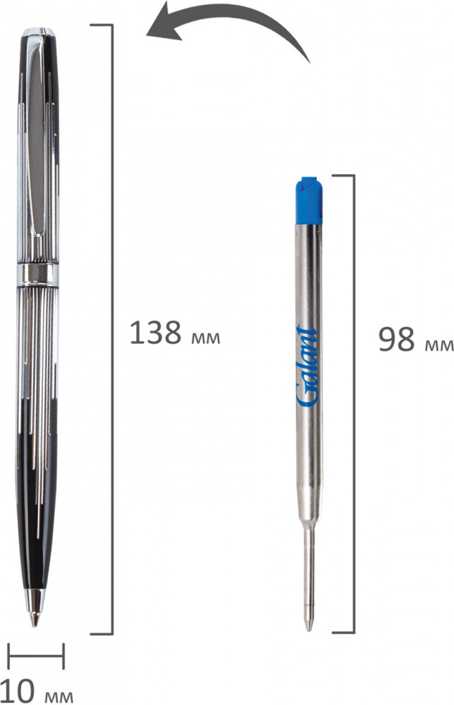 💳 Оплатить за товар можно при получении 🇰🇿 Есть бесплатная доставка по Казахстану от 1 дня 🎁 Копите бонусы с каждой покупки Элегантная ручка станет отличным подарком к любому празднику или событию, подчеркнет статус и изысканность вкуса владельца. Корпус ручки оригинального сочетания черного и серебристого цветов выполнен из латуни и украшен декоративной гравировкой. Поставляется в индивидуальном подарочном футляре. Подходит для гравировки. Стиль и изысканность, роскошь и практичность, совершенство снаружи и внутри — всем этим требованиям достойно отвечает продукция Galant. |