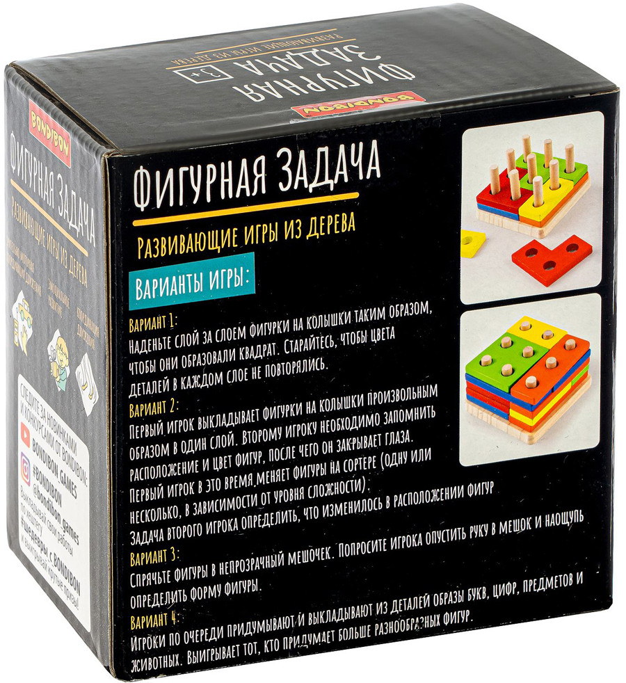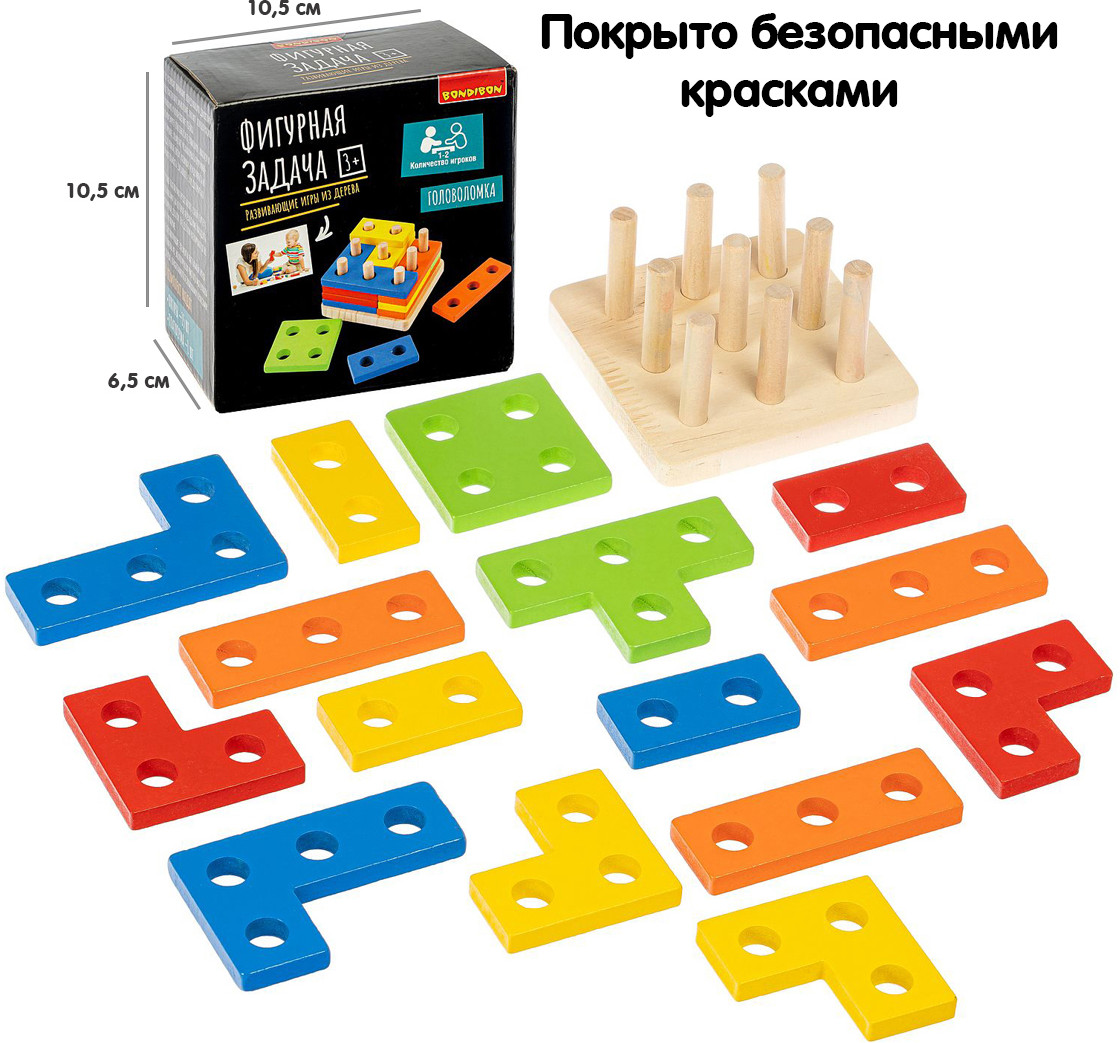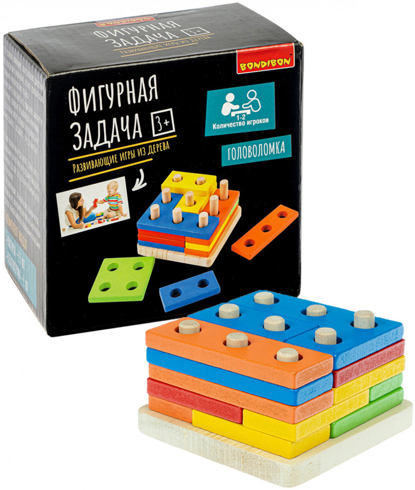 Bondibon Игра настольная «Фигурная задача»В данный момент этот товар отсутствует в продаже. Возможно, у нас найдется аналогичный или похожий товар здесь. Деревянная настольная игра ГОЛОВОЛОМКА «ФИГУРНАЯ ЗАДАЧА» от Bondibon развивает внимание, координацию движений, пространственное мышление, логику, концентрацию внимания и воображение ребёнка. Активизирует способности к сравнению, анализу и сортировке, помогает устанавливать причинно-следственные связи, развивает усидчивость и внимательность, заставляет сосредоточиться. Помогает в изучении цветов и основ счета. Все составляющие элементы настольных игр серии Развивающие игры из дерева выполнены из экологически чистого материала — дерева, обработанного безопасными красками. Игровая платформа представляет собой сортер с колышками, на которые необходимо насадить различные детали. Все детали различаются по цвету, размеру и форме. |