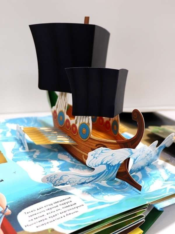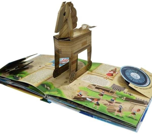 Шикарная книга! Самые известные мифы даны в кратком пересказе. Но вот все эти створки, объемные многоэтажные фигуры впечатляют ребенка. Для первого знакомства с мифами Древней Греции самое то.