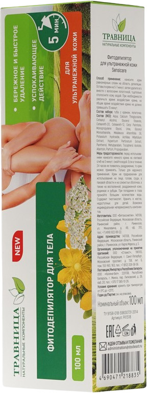 Травница Крем-фитодепилятор для тела-35% +13 натуральный состав нежная текстура безаллергенный нейтральный запах оставляет пеньки раздражение