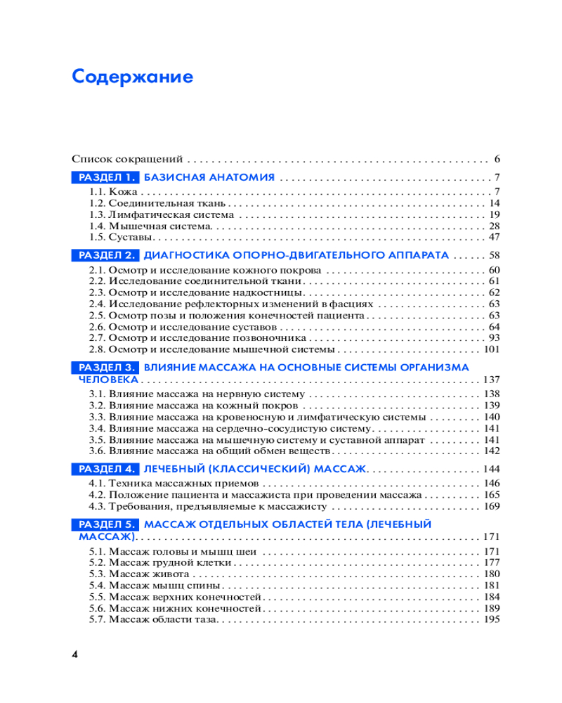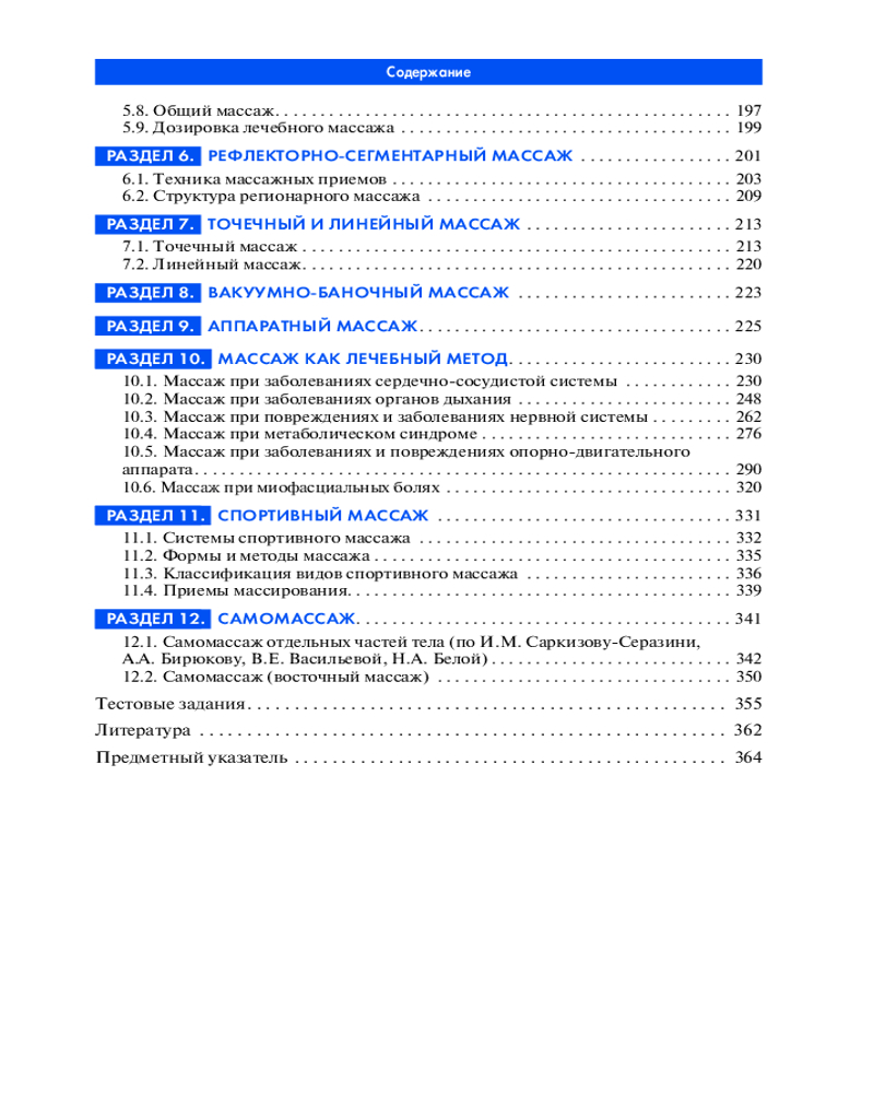 Кроме того, помимо классического (лечебного), довольно подробно освещены принципы и техника выполнения массажных приемов сегментарно-рефлекторного, точечного, вакуум-массажа. Часть пособия содержит дифференцированные методики лечебного массажа при заболеваниях сердечно-сосудистой и нервной систем, органов дыхания и опорно-двигательного аппарата.