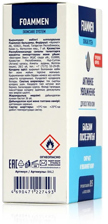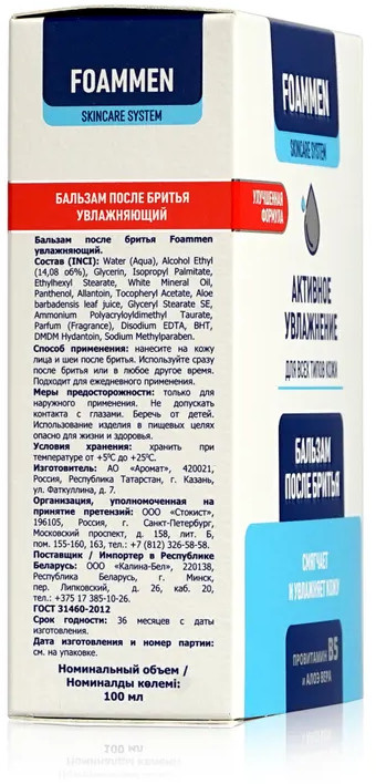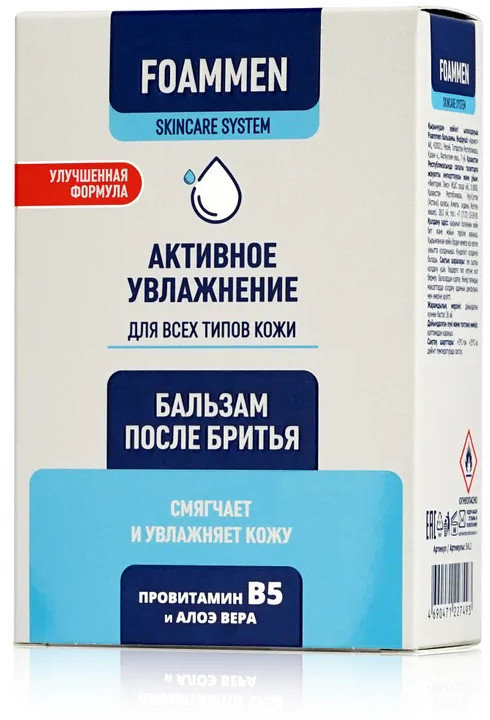 💳 Оплатить за товар можно при получении 🇰🇿 Есть бесплатная доставка по Казахстану от 1 дня 🎁 Копите бонусы с каждой покупки Серия: Активное увлажнение Бальзам после бритья Foammen «Активное увлажнение» смягчает и увлажняет кожу. Содержит провитамин В5, который имеет выраженный противовоспалительный и увлажняющий эффект, активно борется с повреждениями кожи, способствует быстрой регенерации, устраняет воспаления, прекрасно питает кожу, избавляя ее от сухости, шелушений и покраснений. Сок листьев алоэ вера содержит минералы, аминокислоты, витамины, снимает покраснение и раздражение увлажняет глубокие слои эпидермиса, разглаживает морщины, улучшает эластичность кожи. |