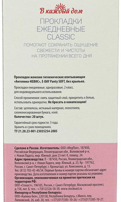 В каждый дом Прокладки ежедневные «Classic»В данный момент этот товар отсутствует в продаже. Возможно, у нас найдется аналогичный или похожий товар здесь. Ежедневные прокладки, как следует из названия, предназначены для ежедневного использования и обеспечивают дополнительную защиту от выделений и запахов. Ежедневки способны подарить ощущение чистоты и свежести. Они обладают достаточной впитываемостью, предупреждают загрязнение белья и сохраняют комфорт в интимной зоне. |