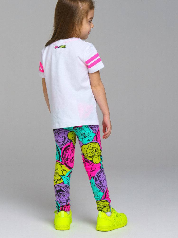 Леггинсы из качественного эластичного трикотажа джерси. Высокое содержание хлопка 95%. Благодаря наличию эластана в составе ткани изделие держит форму и меньше мнется. Пояс-резинка.