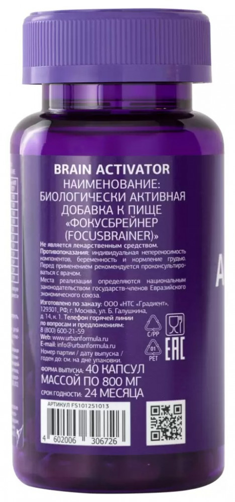 Urban Formula БАД «Brain Activator»В данный момент этот товар отсутствует в продаже. Возможно, у нас найдется аналогичный или похожий товар здесь. Комплекс Brain Activator — это дополнительный источник витаминов и микроэлементов для всех, чья деятельность связана с умственным трудом и высокими интеллектуальными нагрузками. Активные компоненты комплекса помогают улучшить память и концентрацию внимания. Прием комплекса способствует улучшению памяти и концентрации внимания, повышает устойчивость к стрессам, помогает в борьбе с бессонницей. |