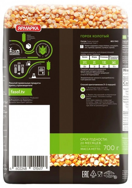 Ярмарка Горох колотый шлифованный+32