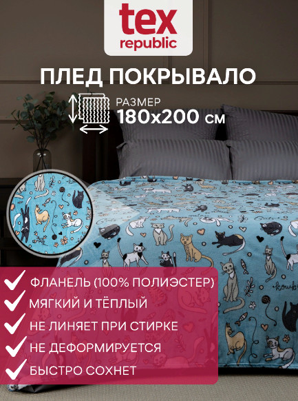 Классный плед,мягкий,цвет насыщенный, самое главное что кошки🫠