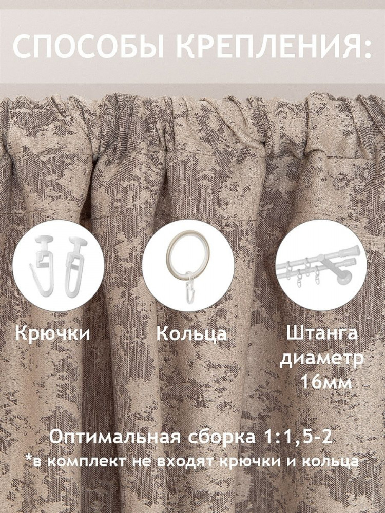Рекомендации по уходу: стирка на деликатном режиме при температуре 30 градусов без применения отбеливателей и агрессивных стиральных порошков, сушка в расправленном виде в естественных условиях, гладить следует с изнаночной стороны не горячим утюгом. Изделие на шторной ленте и готово к использованию.